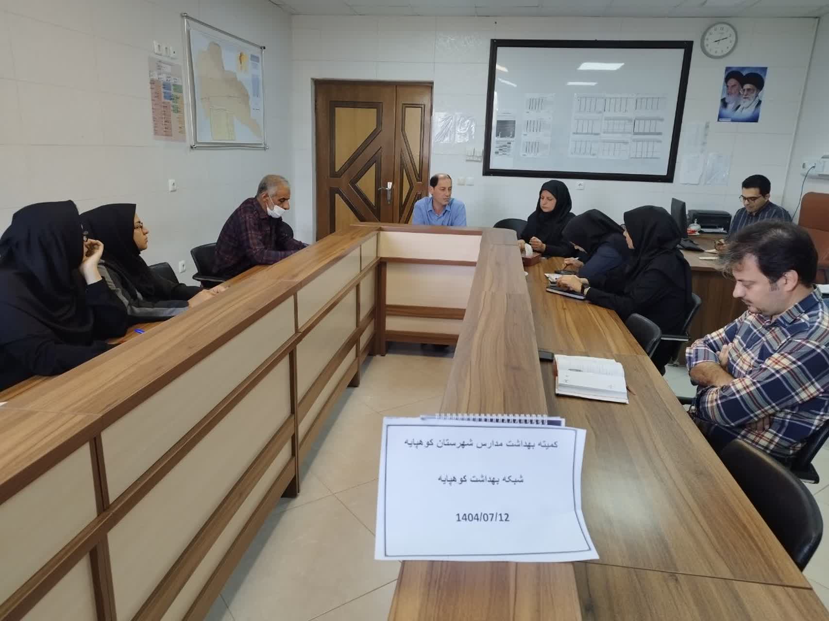 روز شنبه مورخ ۱۲ مهرماه سال جاری، کمیته بین بخشی بهداشت مدارس در سالن اجتماعات مرکز کوهپایه با حضور دکتر افشاری مدیریت، خانم کهنگیان معاون و مسئولین واحدهای فنی شبکه بهداشت و درمان شهرستان کوهپایه، هم چنین آقای مظلوم مسئول سلامت اداره آموزش و پرورش شهرستان برگزار شد.